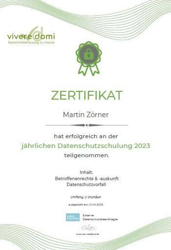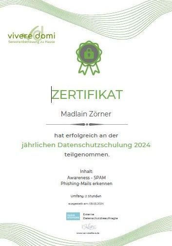Bei der vivere domi erhalten nur diejenigen Beschäftigten Zugriff auf Ihre Daten, die diese zur Erfüllung ihrer vertraglichen und/oder gesetzlichen Aufgabenerfüllung benötigen.